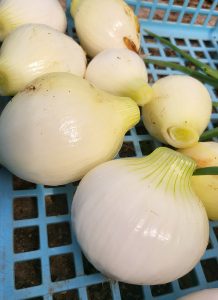 農園便り 2026.04.16 友就館そのほか 春の陽気を感じる日が多くなってきた今日この頃、友就館の農園では新玉ねぎの収穫が始まりました!! 新玉ねぎの他にも、エンドウやキュウリ、キャベツ、ブロッコリーなど友就館お馴染みの春野菜も鋭意栽培中です! 雨が多い気候で不安な部分もございますが、1日でも早く美味しい春野菜を皆様のお手元にお届けできるよう農園チーム一同一生懸命頑張っていきますので、お近くにお越しの際はぜひ友就館の店頭に足を運んでみてください!!