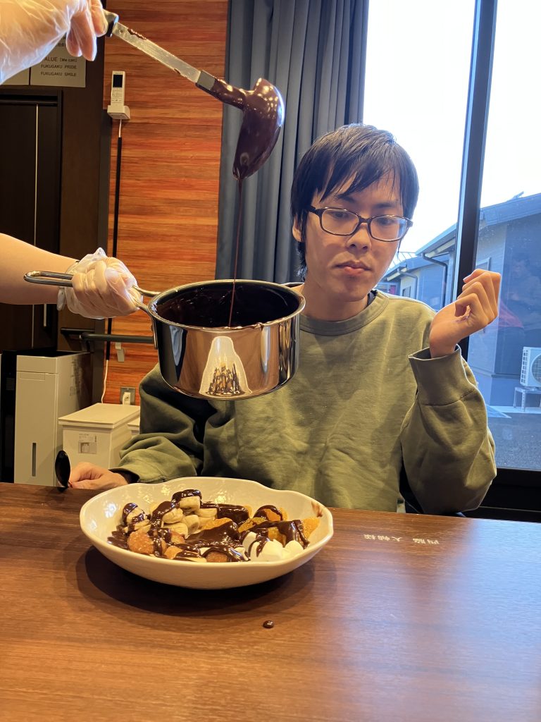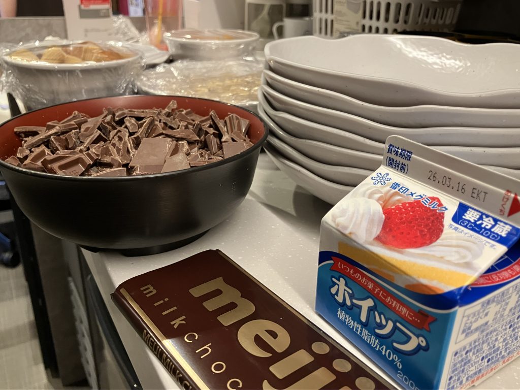 今月の日曜日のお楽しみは、手作りおやつチョコフォンデュの巻でした。