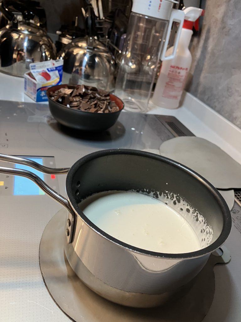 そこにチョコレートを入れて、、、美味しくなーれ♪