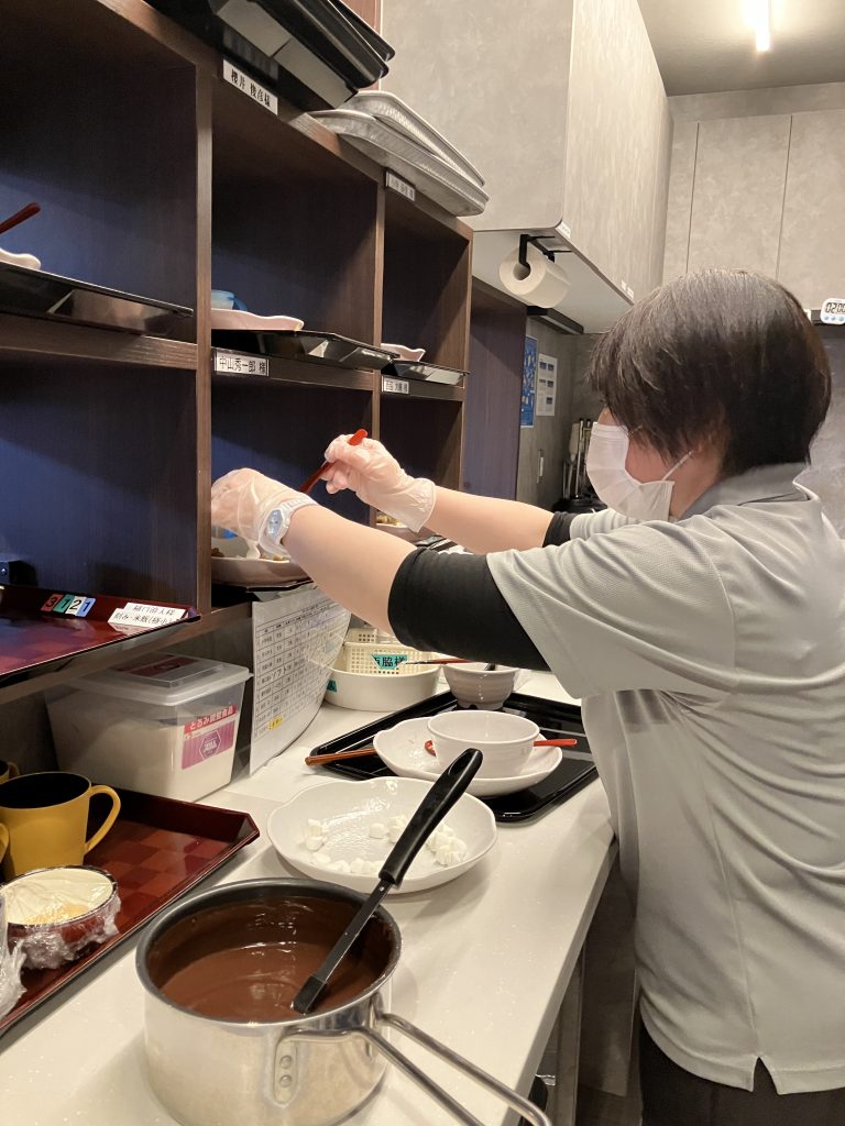 お好きなスイーツと量を選んで頂き、その上から甘ーいチョコレートを掛けていきます。