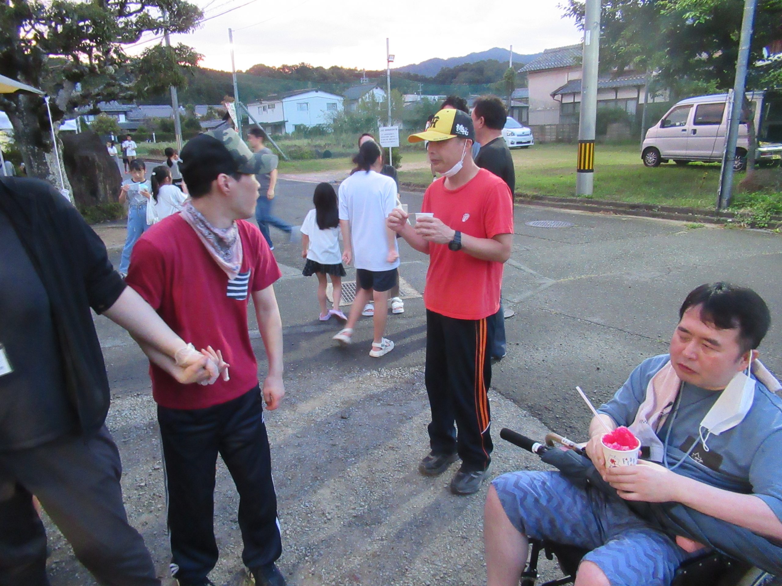 上松地蔵尊祭り 2024.09.03 YOU・ゆう グループホーム響奏です! 地域の地蔵尊祭りが開催されたため、ご利用者と一緒に参加しました。 軽食の唐揚げやかき氷を購入しました。 当日は雨天の心配もありましたが、お祭りの雰囲気を楽しむことが出来ました。 今後も地域交流を深めていきたいと思います。