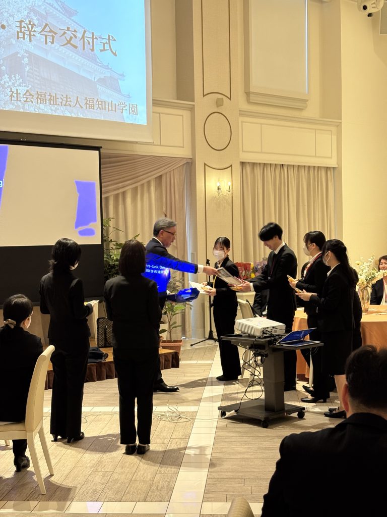 統括理事や副理事長から素晴らしいメッセージをいただき、また理事長から新任職員の皆さんへユニークなプレゼントを渡され、和やかな雰囲気になる場面も。