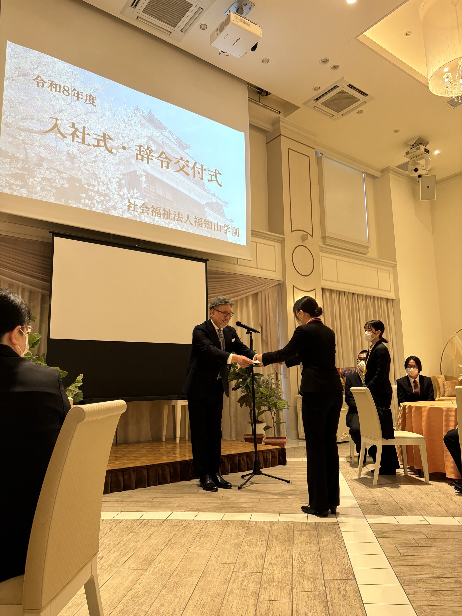 2026年4月1日、毎年恒例のlu CREA様の会場をお借りして【令和8年度 入社式・辞令交付式】を執り行いました。