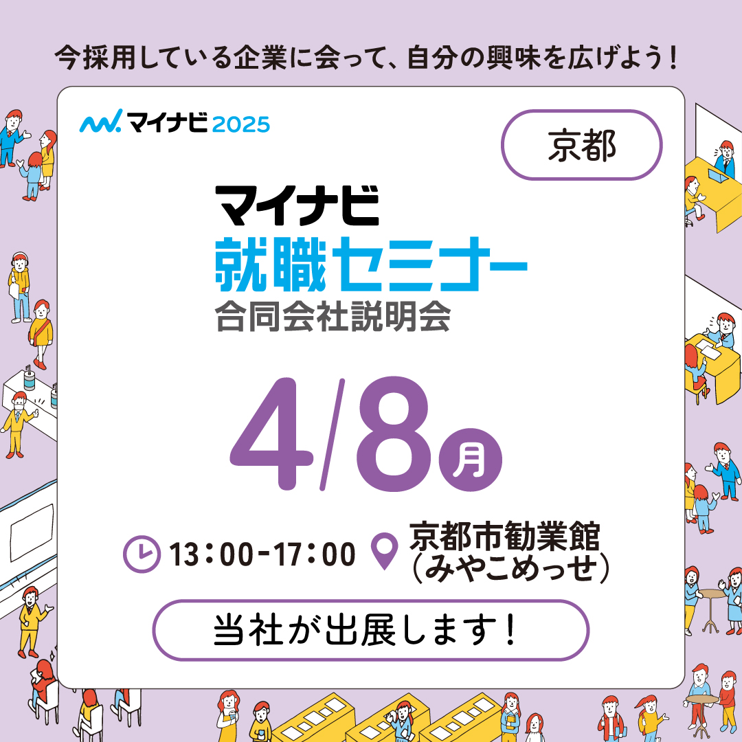 入場予約はこちら→https://job.mynavi.jp/25/pc/corpinfo/displaySeminar/index?optNo=dFiROC&corpId=3012140