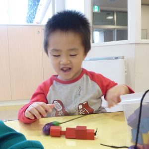 サブ活動では、友だちと一緒にルールのある遊びを楽しんだり、職員とやりとりしながら紐通しやプットインをしたりして、ほっこり過ごしました。