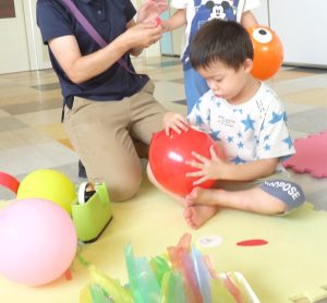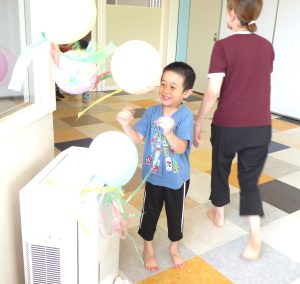 児童発達支援事業 2025.09.13 すきっぷ 釣りや容器を作ってスーパーボールすくい、絵の具遊び、プールでは泡遊びも楽しみました。まだまだ暑い日が続いていますが、元気いっぱい活動しています♪ すきっぷ公園では汗びっしょり💦で遊具遊びや追いかけっこを楽しみました。 みんなだいすき『だるまさん』の絵本をテーマにしたコーナー遊びでは、なり切ったりだるま落としにも挑戦! バランスボールも楽しかったよぉー♪ 風船遊びではおばけに変身させたり、けん玉制作はみんな丁寧に取り組むことができました。