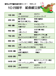 10月1日(水)~15日(水)の献立表を掲載いたします。