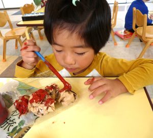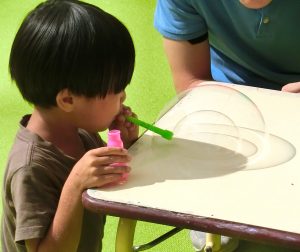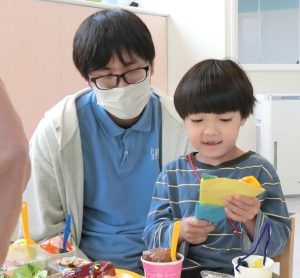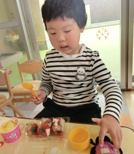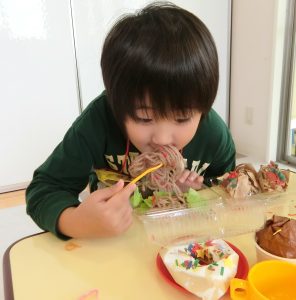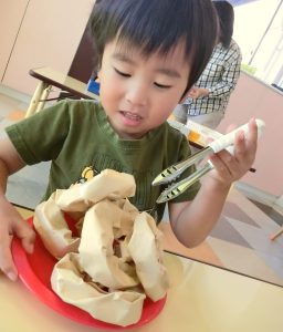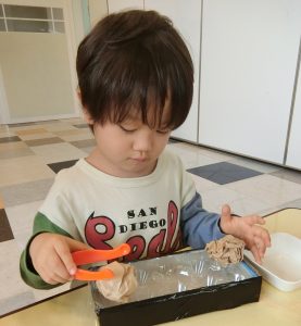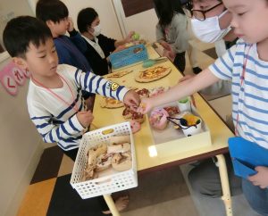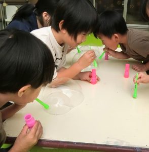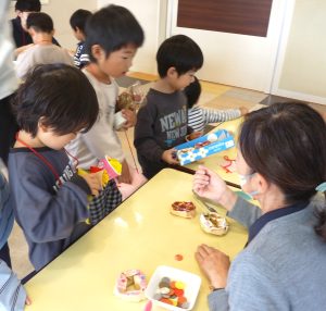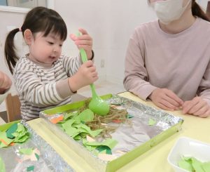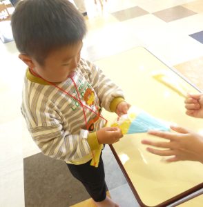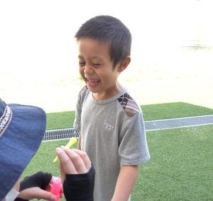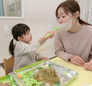 児童発達支援事業 2025.11.13 すきっぷ みんなで敷地内のお庭へお散歩に行きました♪ 友だち同士のおしゃべり等のやりとりも弾み、友だち関係の深まりを感じる秋でした♡ 机の上にシャボン玉ができるのを発見したよ! お店屋さんの準備♪ 味見も大切です(笑) お買い物に出発!! 上手に言えるかな? あれもこれも美味しそう♡ いっぱい買えて大満足でした★