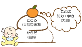 「ことば」の獲得と活用を支えるのは、からだ(脳幹)とこころ(大脳辺縁系)です。