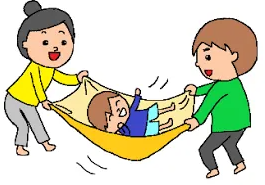 例えばすきっぷの療育の場面ではよく「シーツぶらんこ」をして遊びます。