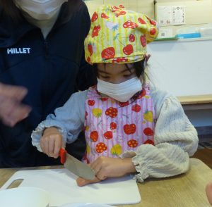 バナナと、ウィンナーは自分で包丁で切りました‼