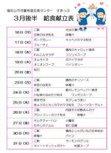 3月後半の献立表を掲載いたします。
