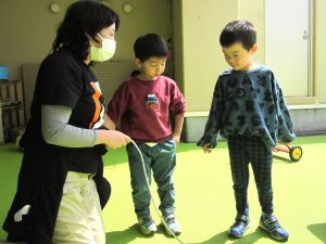 児童発達支援事業 2026.04.11 すきっぷ 新年度初回は、新しい友だちや新しい先生と手遊びをしたり、自己紹介をしました。 「すきっぷ公園で遊ぼう」では好きな遊具を見つけてたっぷり身体を動かして遊んだり、先生や友だちと元気いっぱい駆け回って楽しまれる姿も見られました。 天気のいい日はテラスに出て車に乗ったり、なわとびやシャボン玉遊びを楽しみました。
