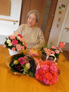 また、ご家族様からもお花や、お手紙をプレゼントされ皆様恥ずかしそうな表情をされていましたが、とても喜ばれていました🥰