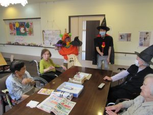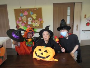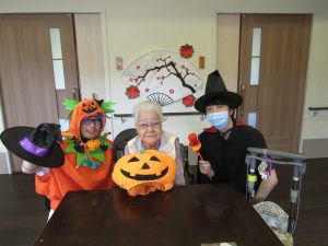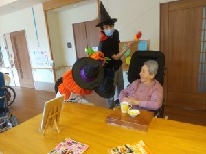 ハロウィンの仮装をした職員が「おばけだぞ~!」と各ユニットのご利用者様を驚かせに現れました。