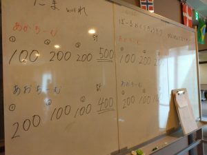 赤チーム1000点、青チーム800点でわずかな差でしたが赤チームが勝ちました!